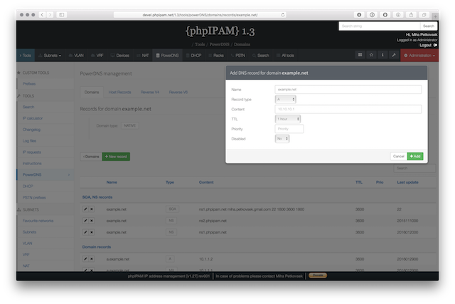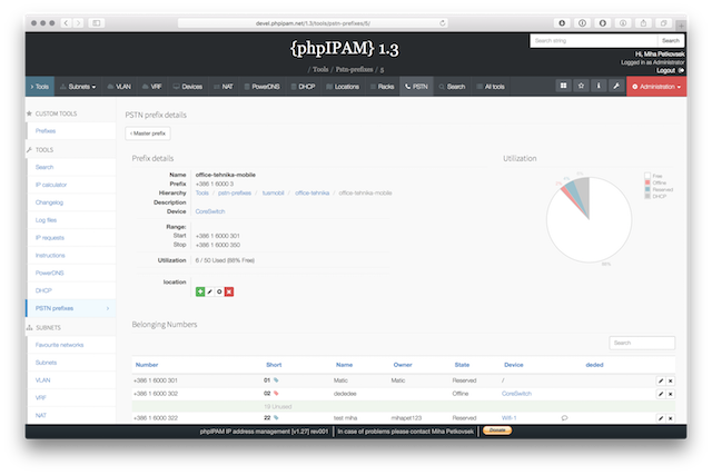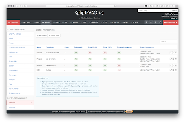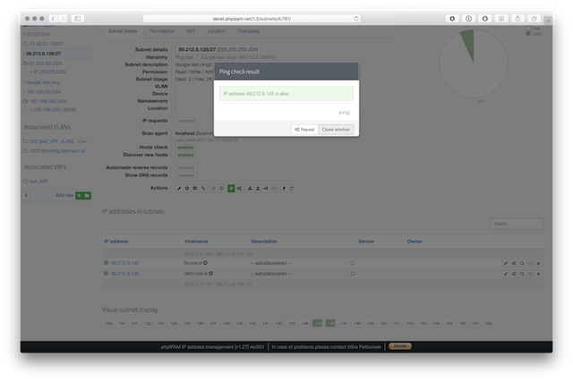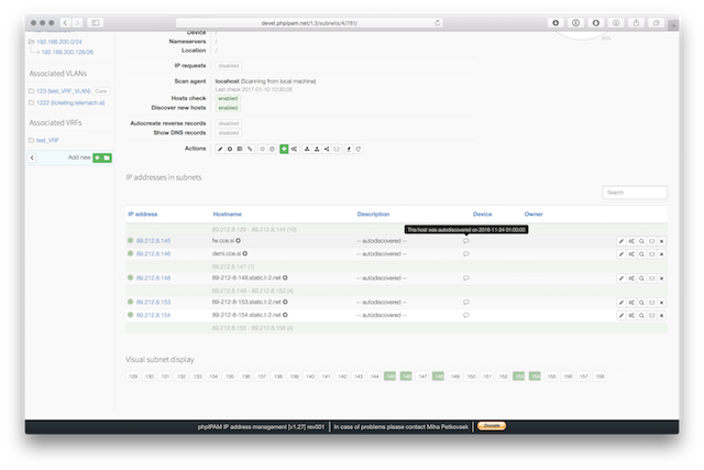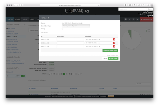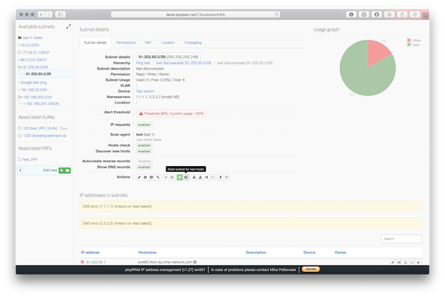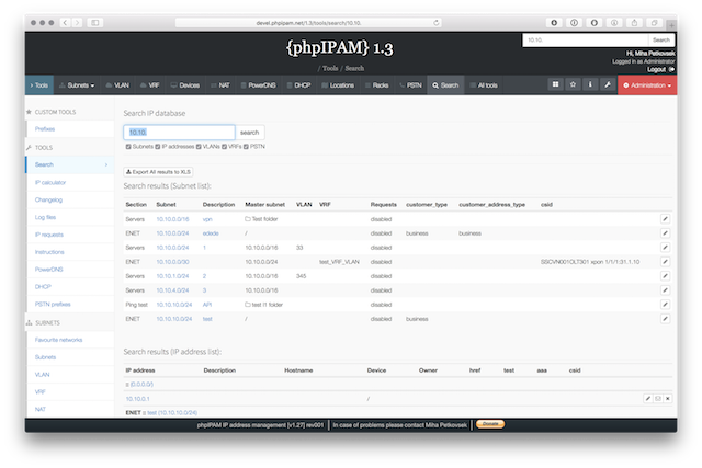 Below are some screenshots form latest release. You can see latest release of phpipam in action by visiting http://demo.phpipam.net !